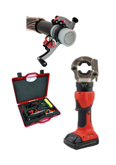 Herramientas de corte: Diseñadas para realizar cortes limpios y sin deformación en conductores de diferentes secciones y materiales (aluminio y cobre), manteniendo la integridad del cable.